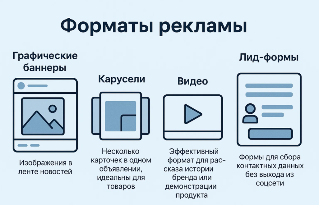 Ключевые преимущества этого подхода — его точность и эффективность. Широчайший выбор форматов позволяет донести ваше сообщение именно так, как это будет наиболее уместно: ярко и визуально через видео или информативно через текст и картинку. Кроме того, один инструмент успешно решает задачи и брендинга, и перфоманс-маркетинга (направленного на прямой отклик).